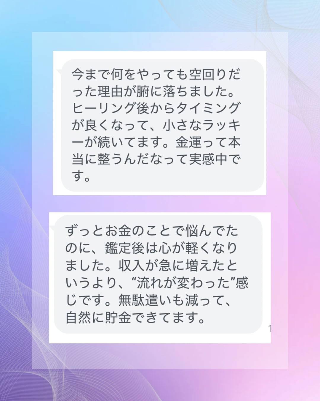 《金運覚醒×現実創造ヒーリング鑑定》です。